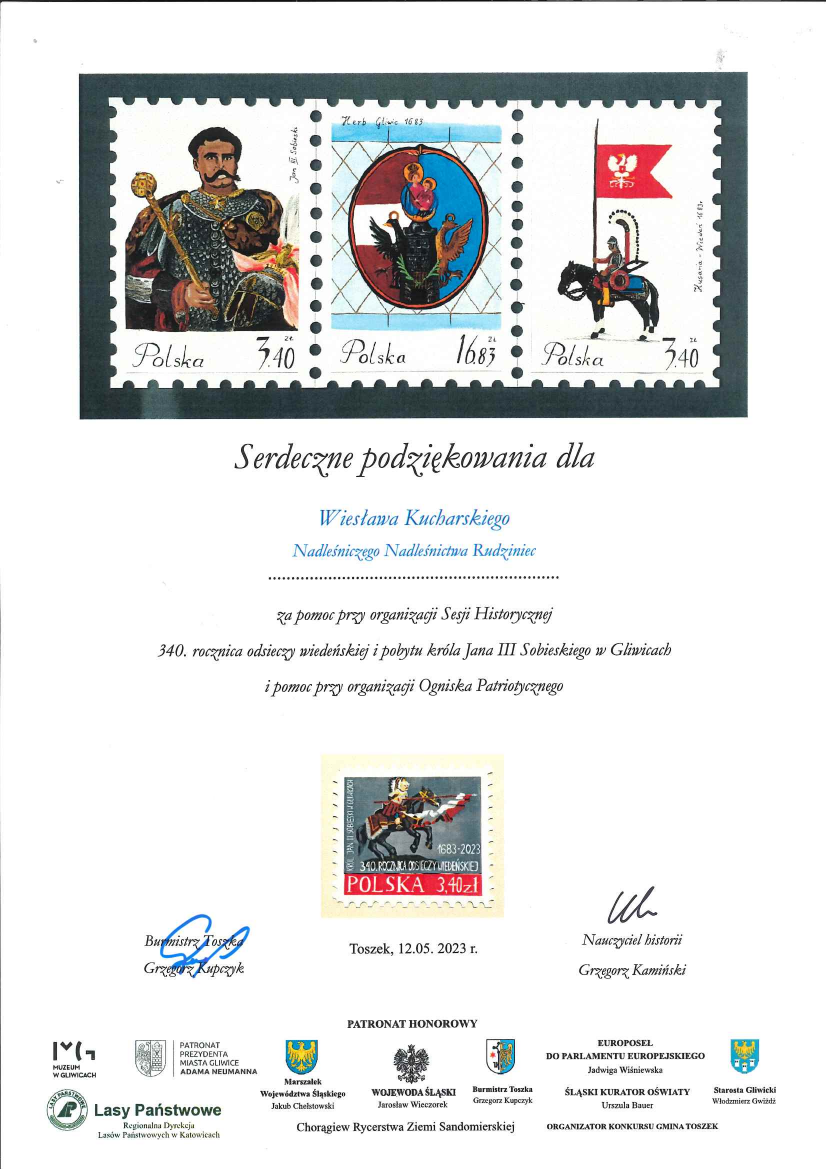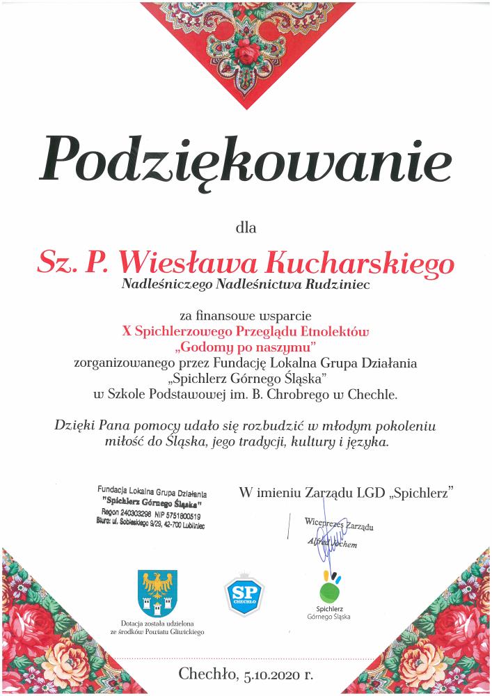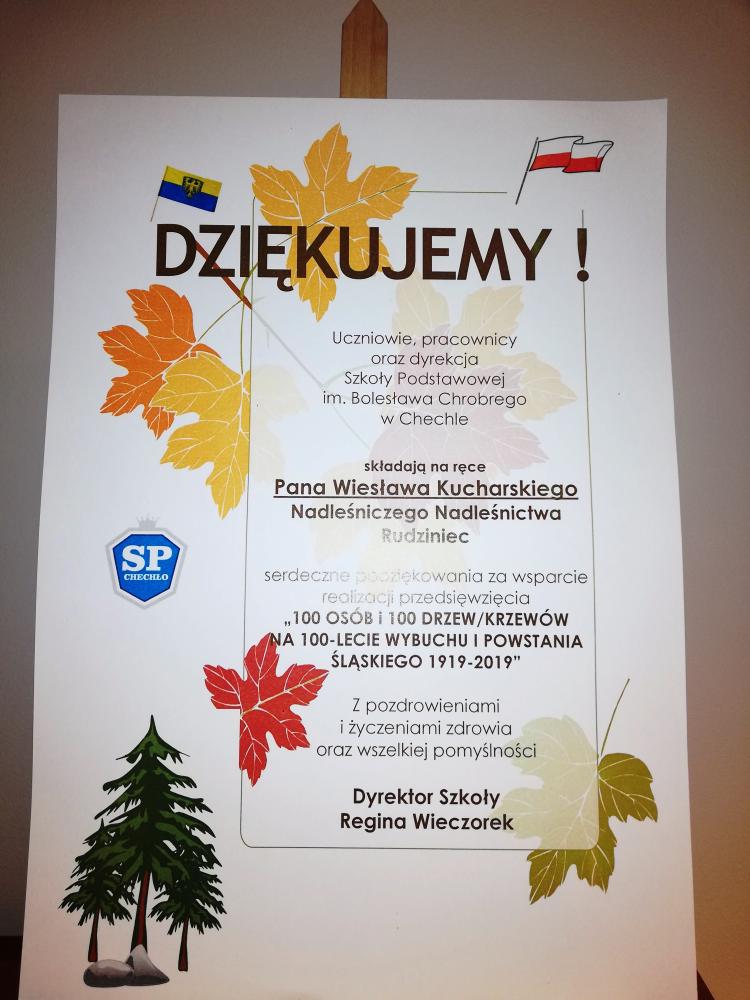 Podziękowania dla Nadleśniczego Nadleśnictwa Rudziniec od Fundacji LOK "Spichlerz Górnego Śląska"
