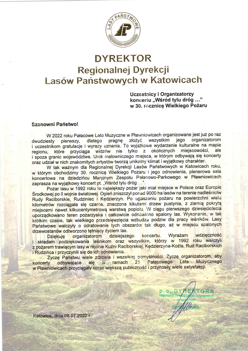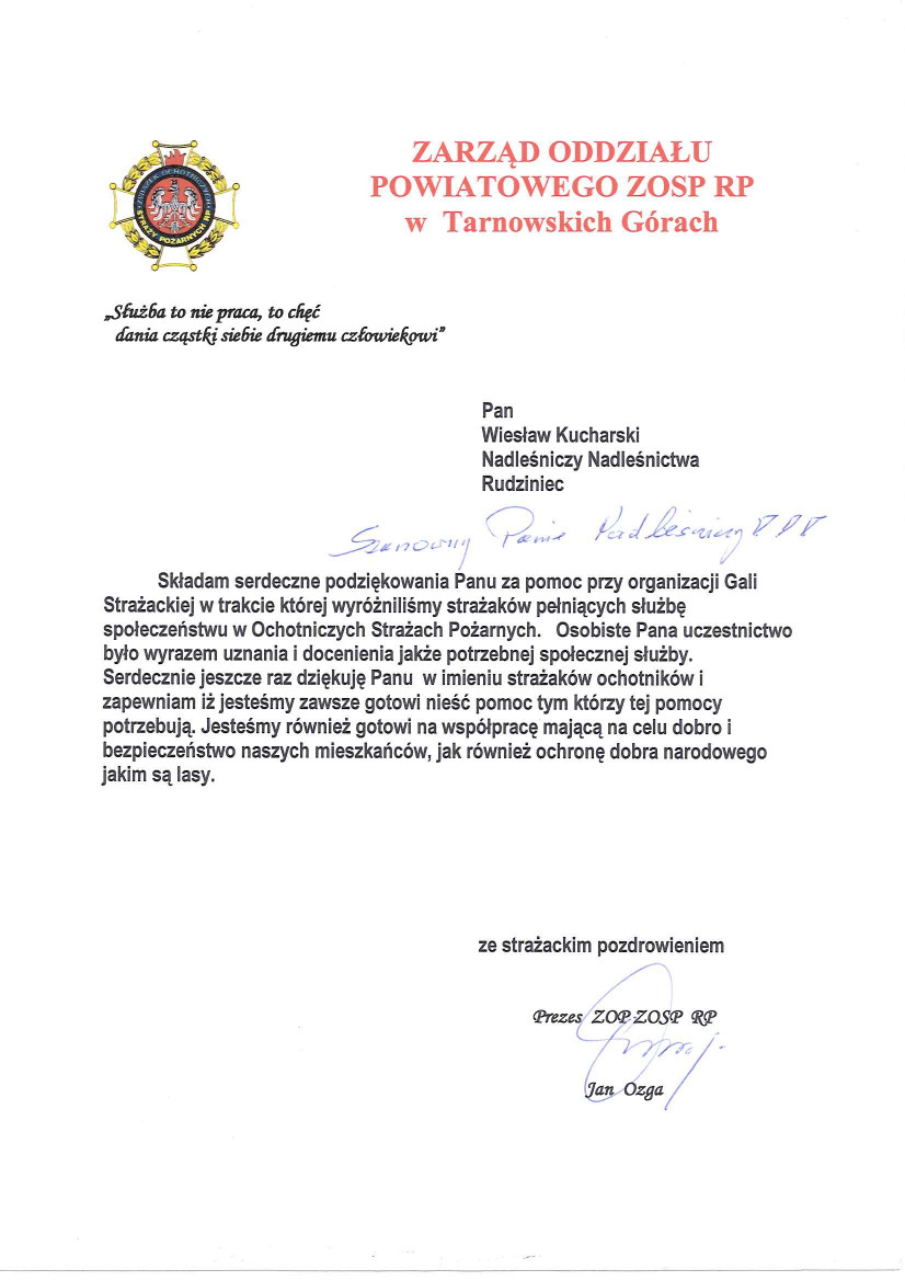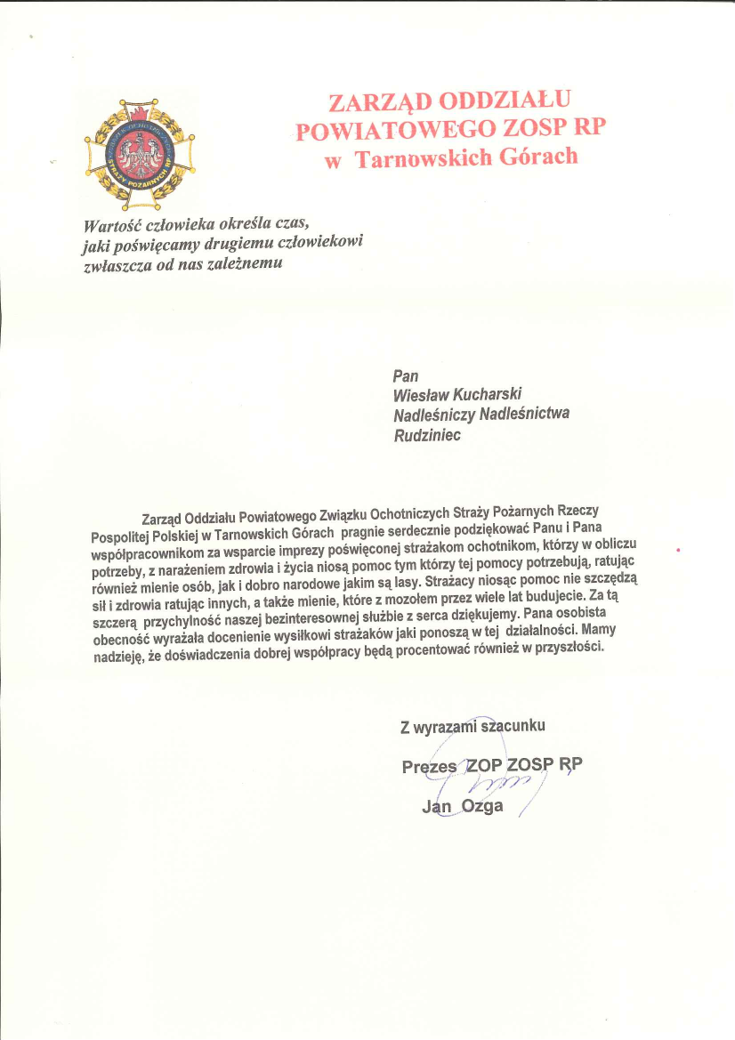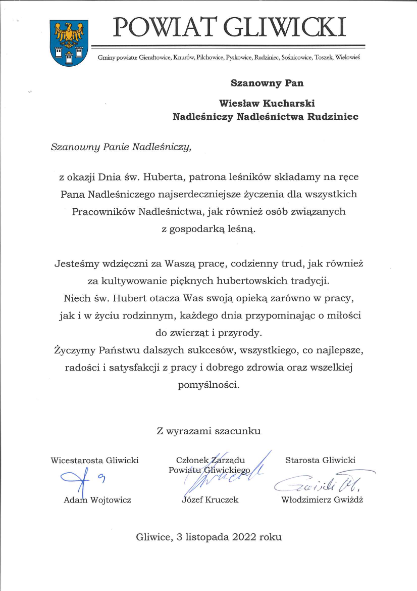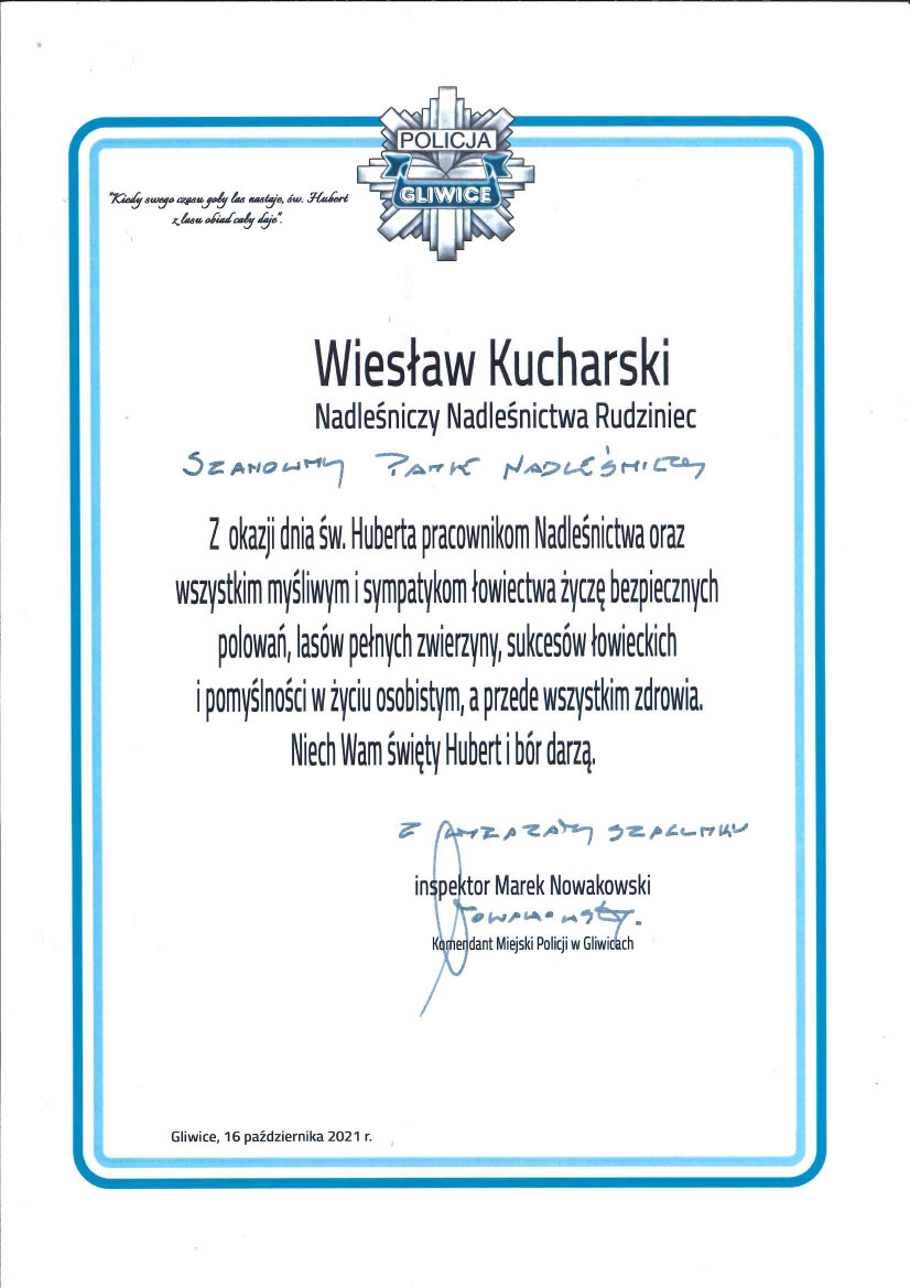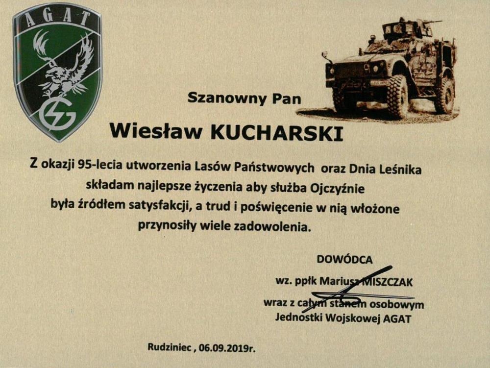 Podziękowania i gratulacje dla Nadleśnictwa Rudziniec