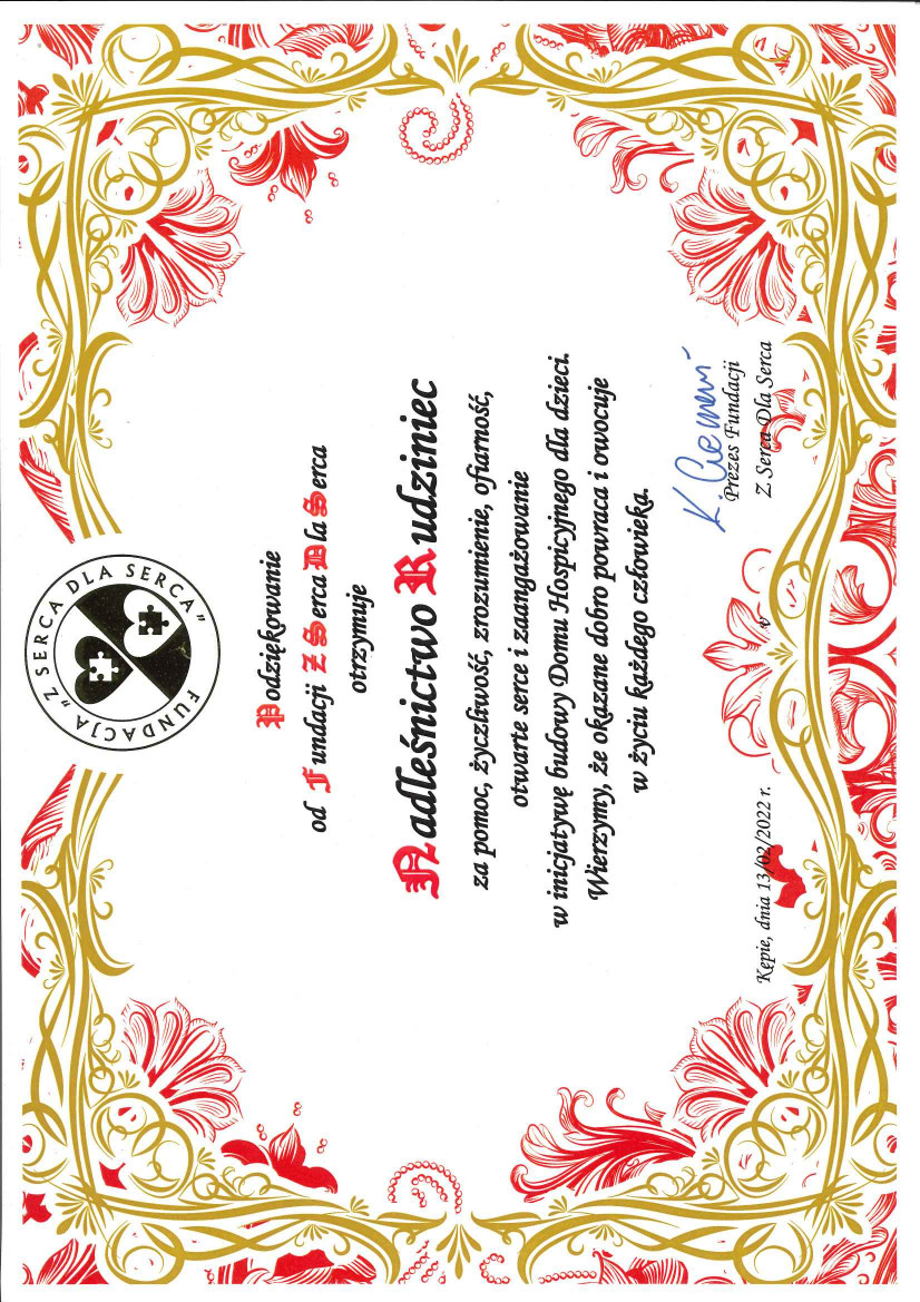 Podziękowanie ZSP w Rudnie