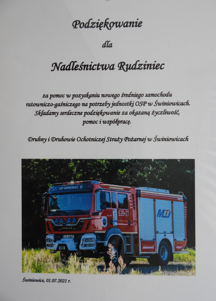 Podziękowania od OSP w Świniowicach (2021)