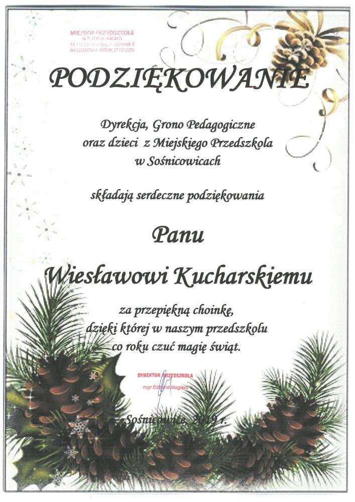 Podziękowanie Miejskiego Przedszkola w Sośnicowicach