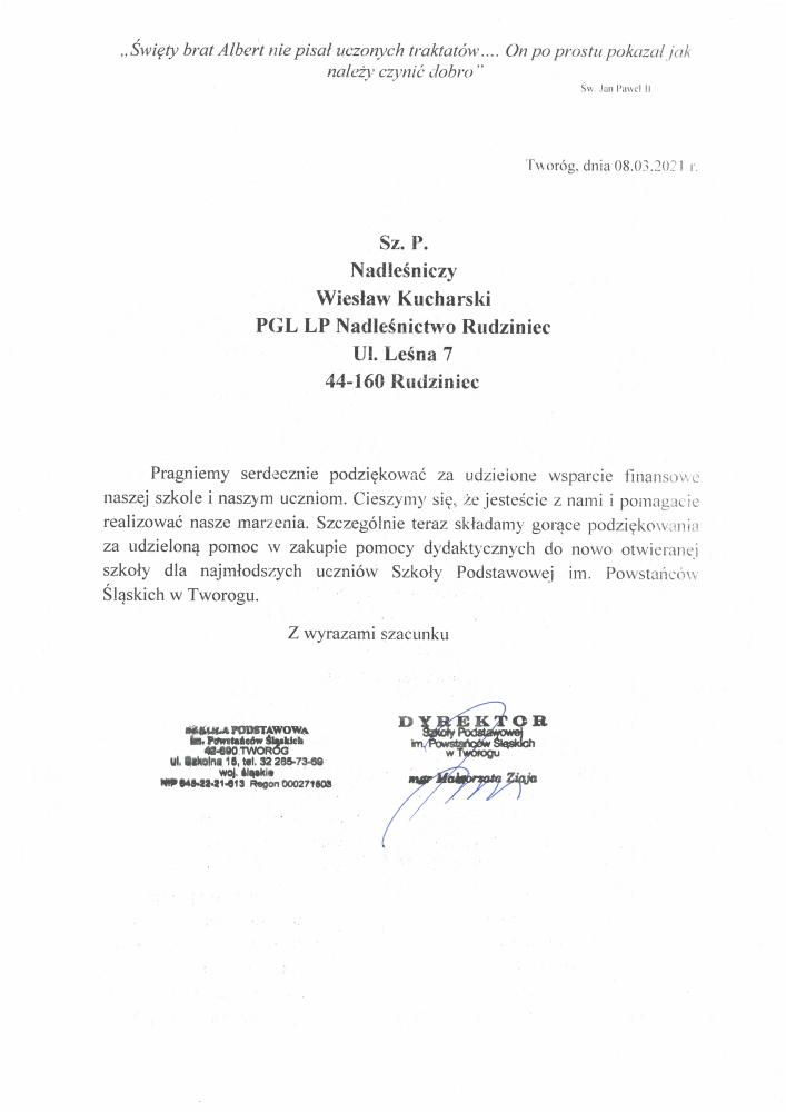 Podziękowania od SP w Tworogu