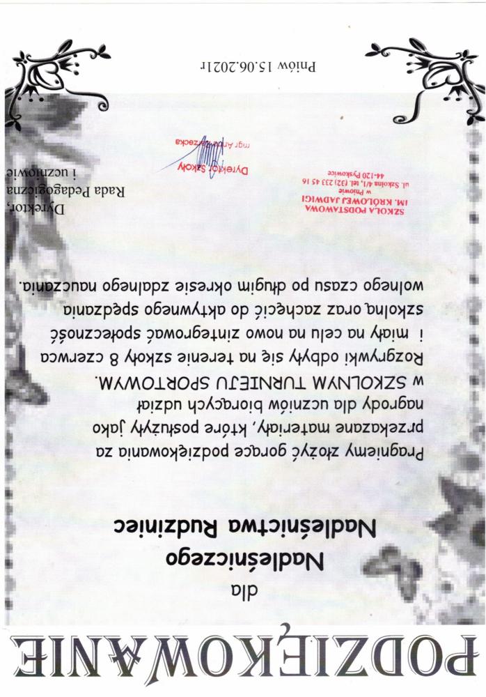 Podziękowanie Szkoły Podstawowej w Chechle