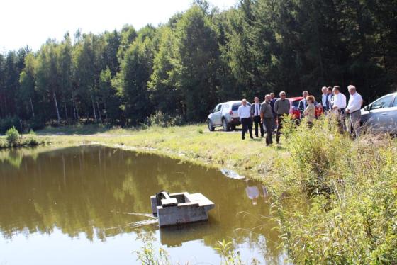 Część terenowa obejmowała prezentację zmodernizowanego w ramach Małej Retencji Nizinnej zbiornika wodnego umiejscowionego na terenie Leśnictwa Łącza, skąd udano się na teren Leśnictwa Ostropa, gdzie zaprezentowano planowaną do wykonania kolejną inwestycję wodną (tzw. zbiorniki paciorkowe).